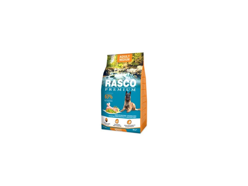 Krmivo Rasco Premium Adult Medium kura s ryžou 3kg