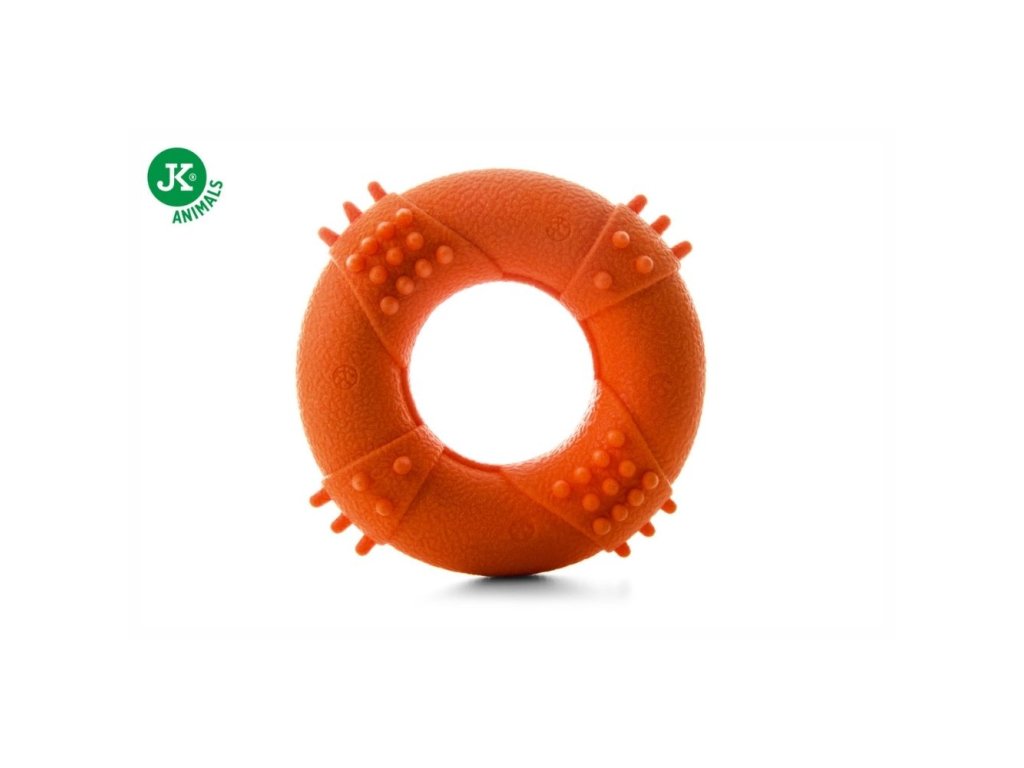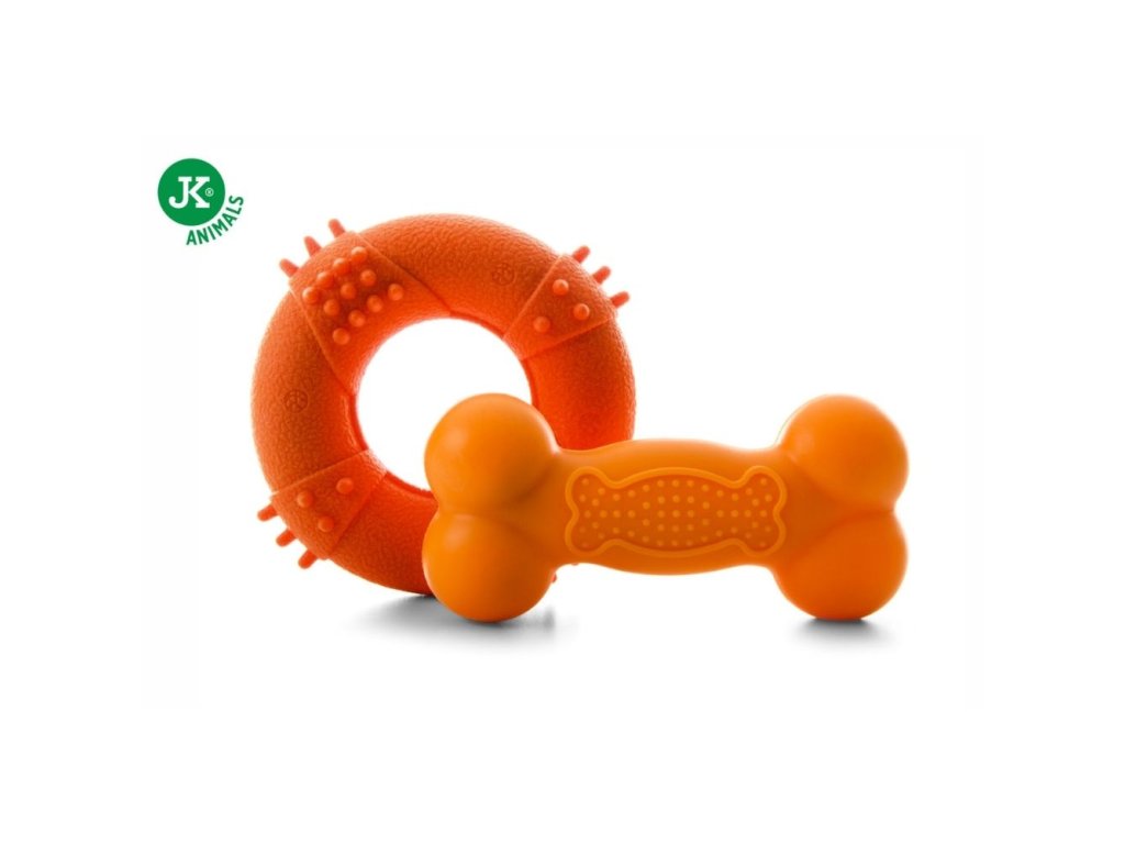 Kruh s bodlinami a pískacia kosť z TPR gumy, oranžová, veľmi odolná hračka