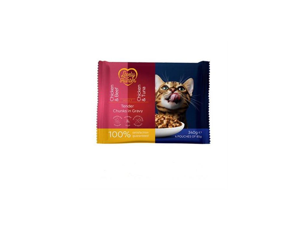 Mokré krmivo Lovely Hunter s mäsom je každodenným riešením pre dospelé mačky, ktoré kombinuje lahodnú chuť, esenciálne bielkoviny a dôležité živiny.