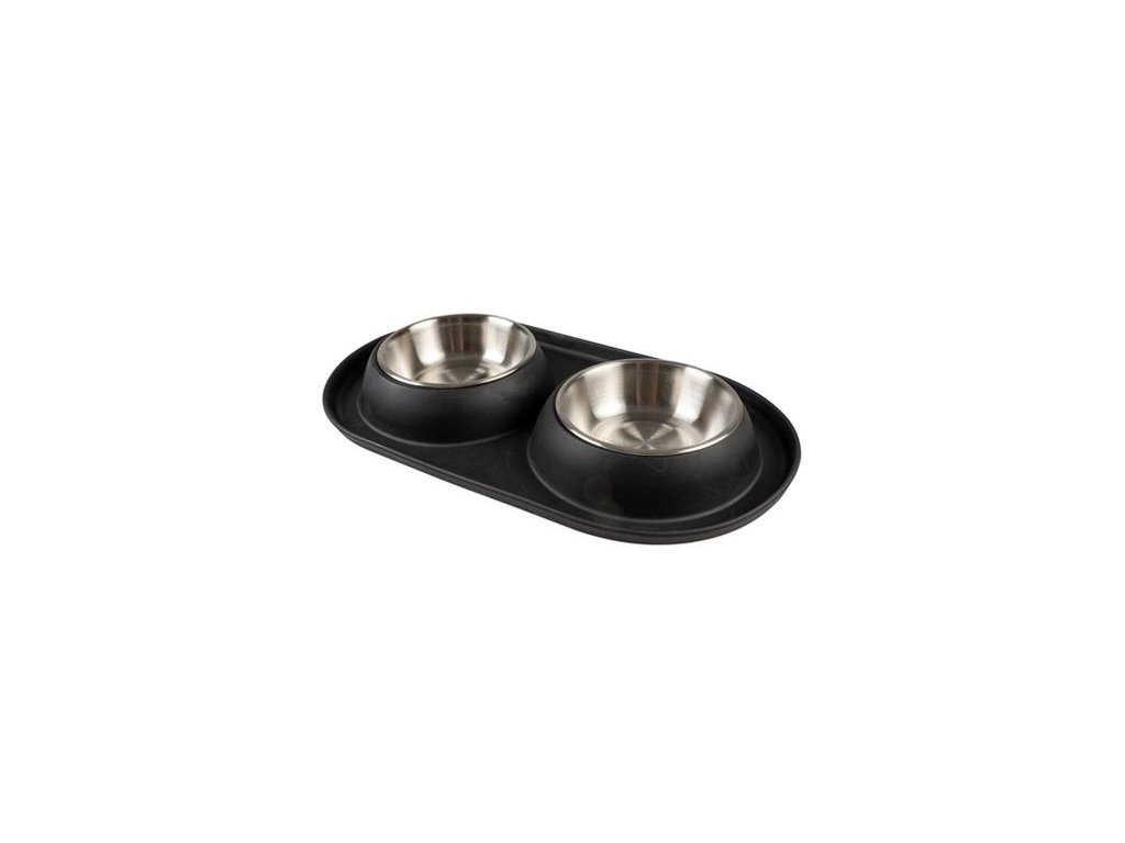 Miska DUVO+ Podložka s dvomi miskami nerez gumená čierna s priemerom 11,3 cm 2 x 220 ml