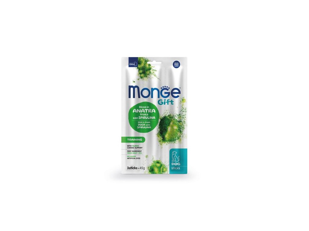 MONGE GIFT Sticks Training 45g/3ks tyčinky pre psov s kačacím mäsom a spirulinou ideálne na tréningy