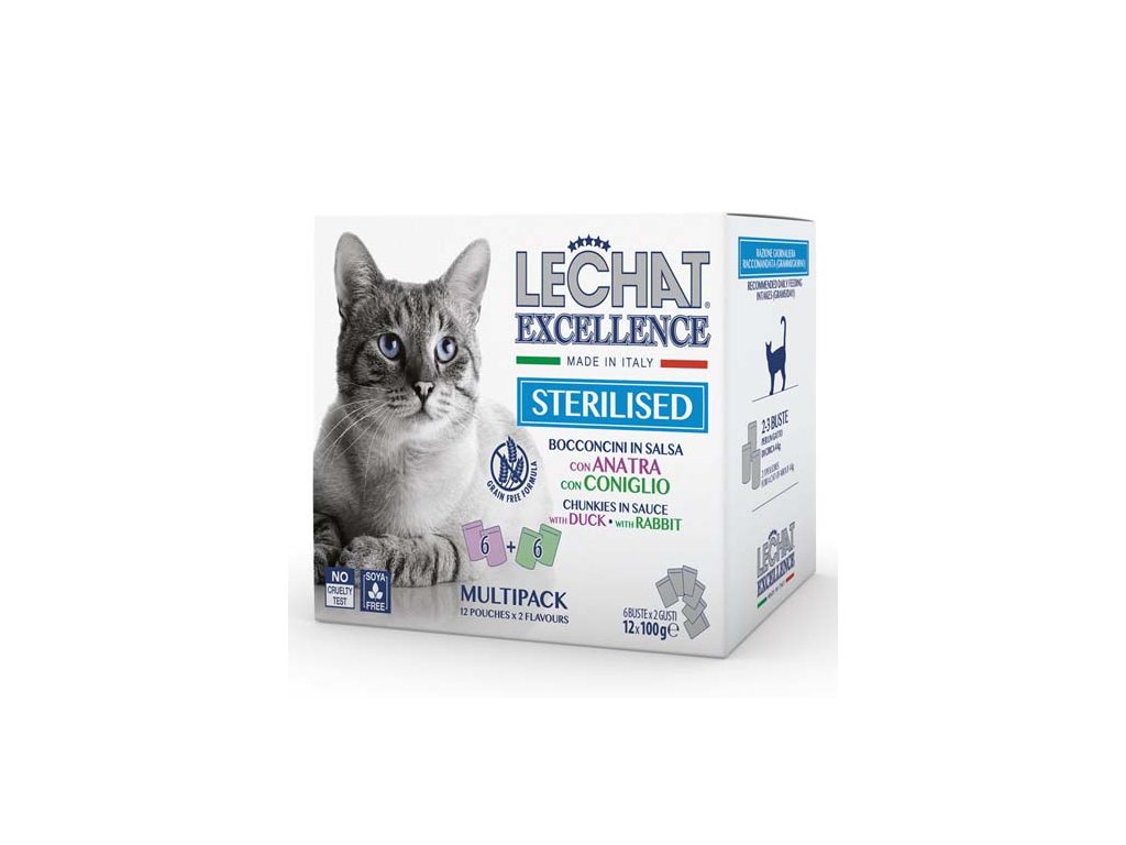 MONGE LECHAT EXCELLENCE STERILIZED kačica/králik multi pack 12x100g kapsička