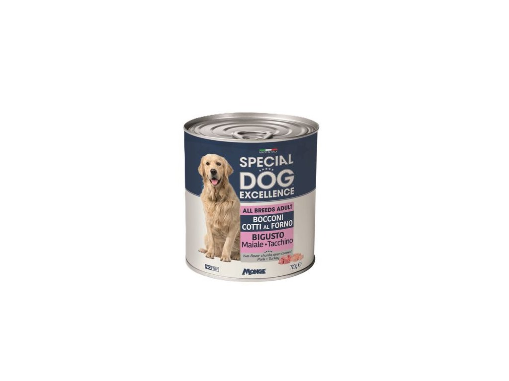 MONGE SPECIAL DOG EXCELLENCE pečené kúsky v šťave s bravčovým a morčacím mäsom pre psov 720g