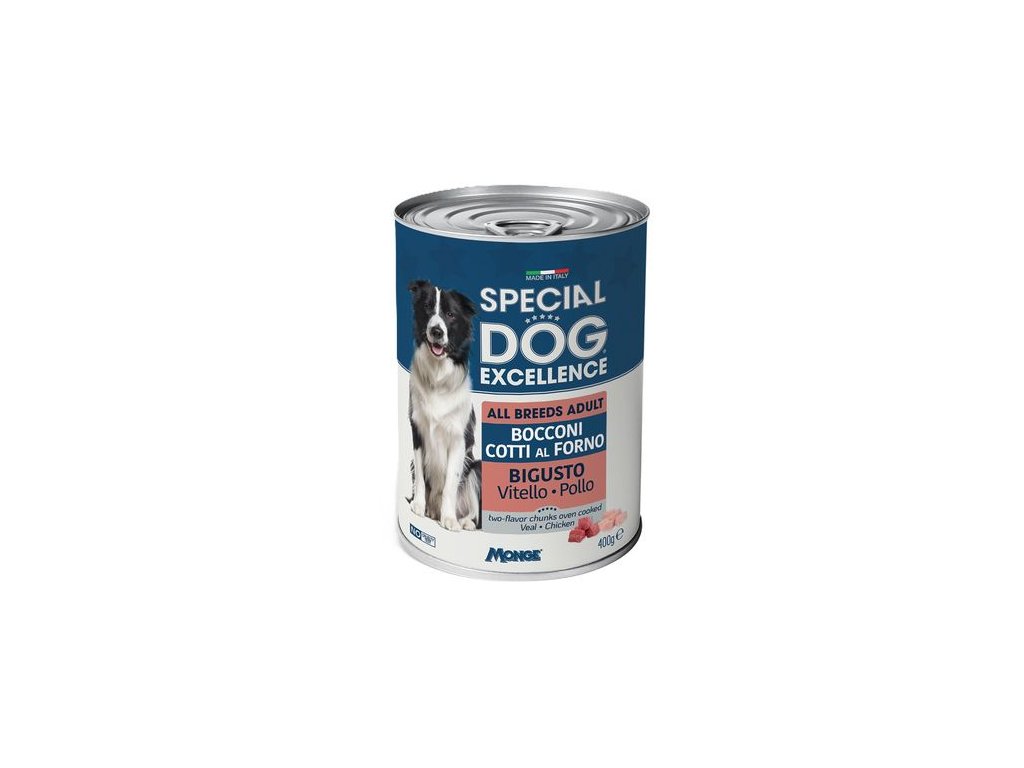 MONGE SPECIAL DOG EXCELLENCE pečené kúsky v šťave s teľacím a kuracím mäsom pre psov 400g