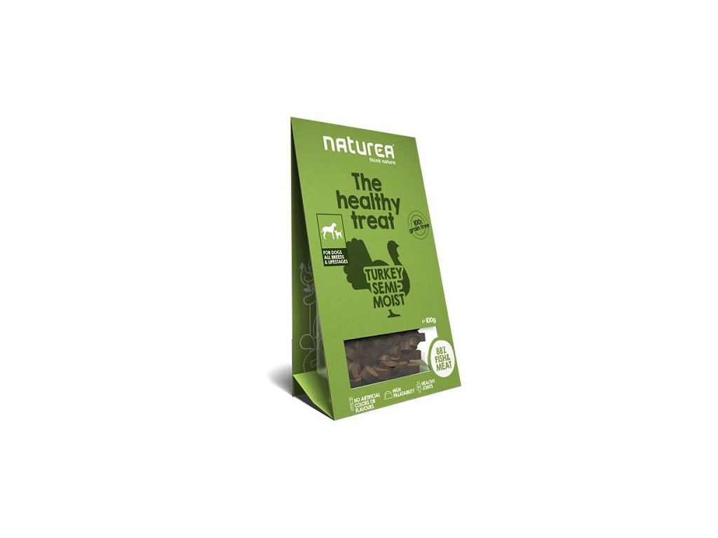 Naturea Treats - odmeny, sú vyrobené min z 88% čerstvého mäsa alebo rýb. Káždá Naturea odmena je obohotená o prísady glucosamine and chondroitin, ktoré prispevajú k ochrane kĺbov spoločne ako pri šteniatku tak aj pri dospelom veku psa. Kompletným zložením spoločne s riasami a zeleninou sa tieto odmenky okrem ich veľkej nutričnej hodnoty stávajú aj zážitkom chuti a textúry pre Vášho psa.