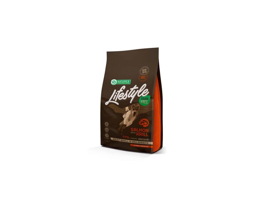 Nature's Protection Lifestyle Grain Free with Salmon and Krill for Adult Small and Mini Breeds je super prémiové kompletné a vyvážené suché krmivo pre psov s najkvalitnejšími zdrojmi bielkovín a surovinami. Toto suché krmivo pre psov je špeciálne navrhnuté pre dospelých psov malých a mini plemien, ktorým pomáha zabezpečiť bezproblémový tráviaci systém. Je obohatené o inovatívne zložky, ktoré neobsahujú žiadny lepok, a poskytuje dokonalý výkon pre pohodu domáceho maznáčika. Kompletné zloženie tohto suchého krmiva pre psov poskytne vášmu domácemu miláčikovi nielen všetky účinné živiny, ale zabezpečí aj zdravý stav kože a lesklú srsť.