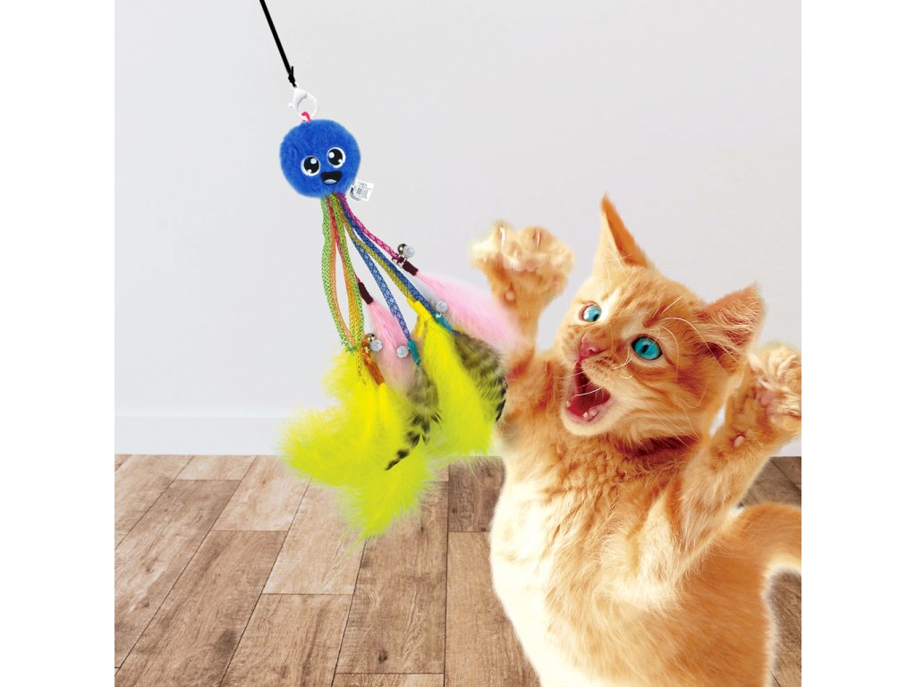 Zábavná hračka pre mačky v podobe peknej drevenej trstiny, na ktorej je zavesený zábavný polyesterový predmet.Je vybavený kocúrnikom a zvončekom a je k...
