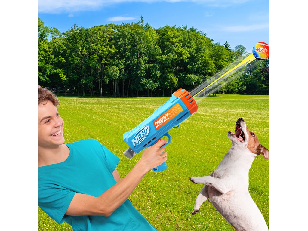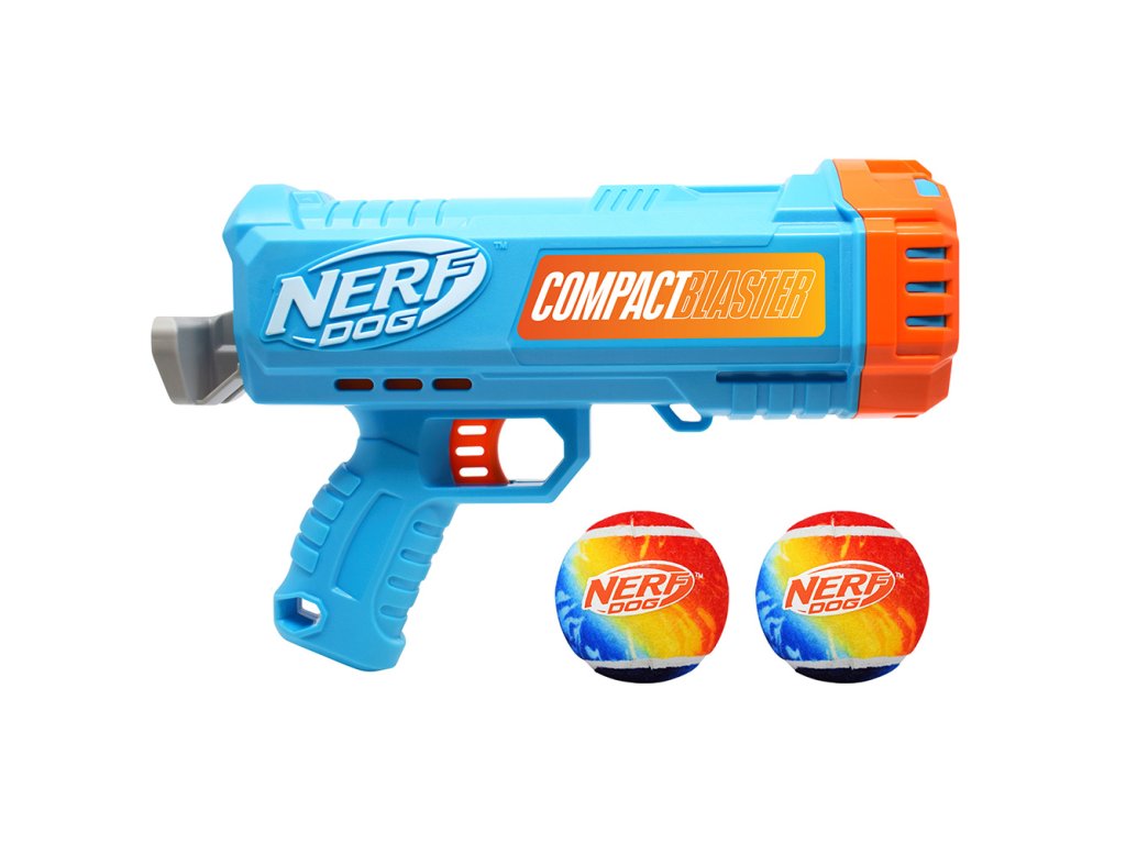 NERF DOG Darčeková sada – 30 cm kompaktný blaster a 2 ks tenisových loptičiek bez pískadla