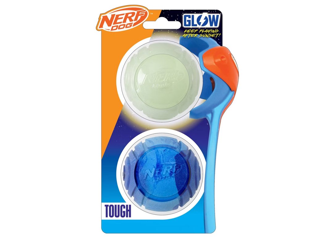 NERF DOG Darčekový set - svietiaca loptička Lightning 6,5 a Sonic loptička s vôňou arašidového masla