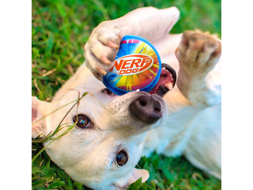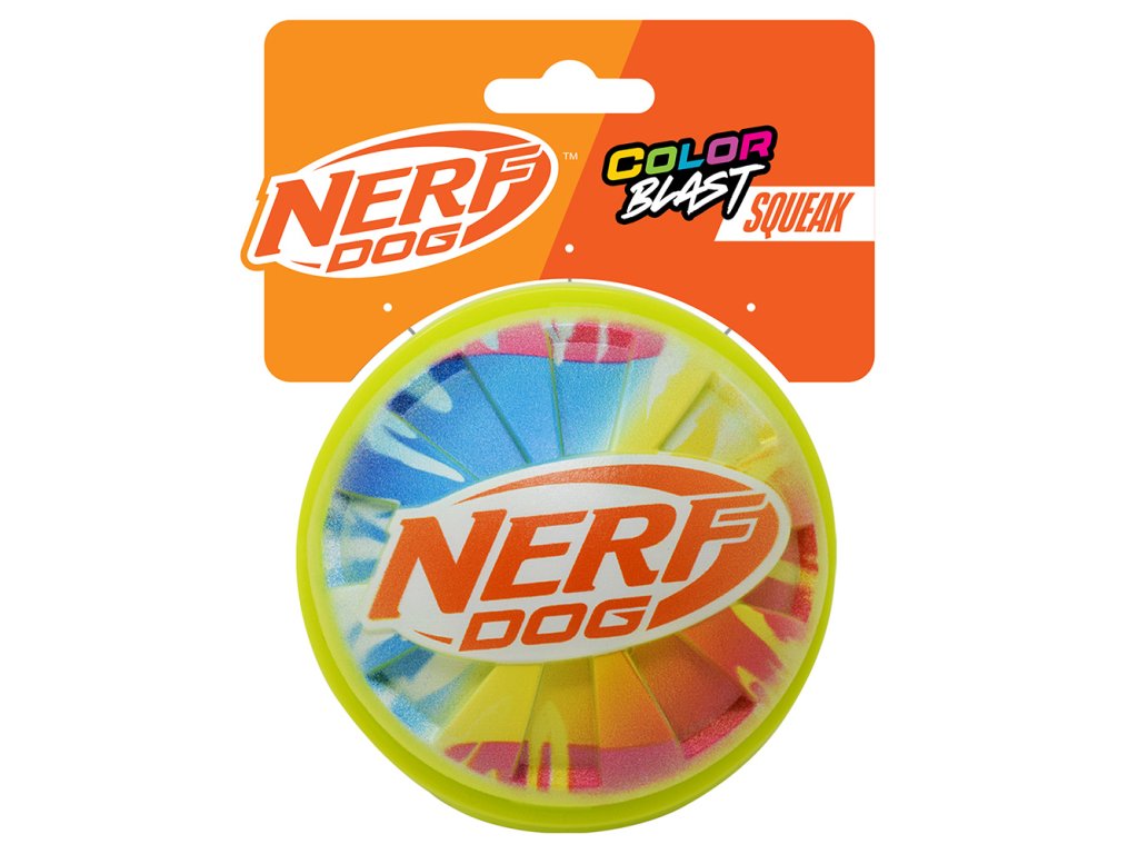 NERF DOG Hračka pre psov pískacia loptička s farebným úchopom 10 cm