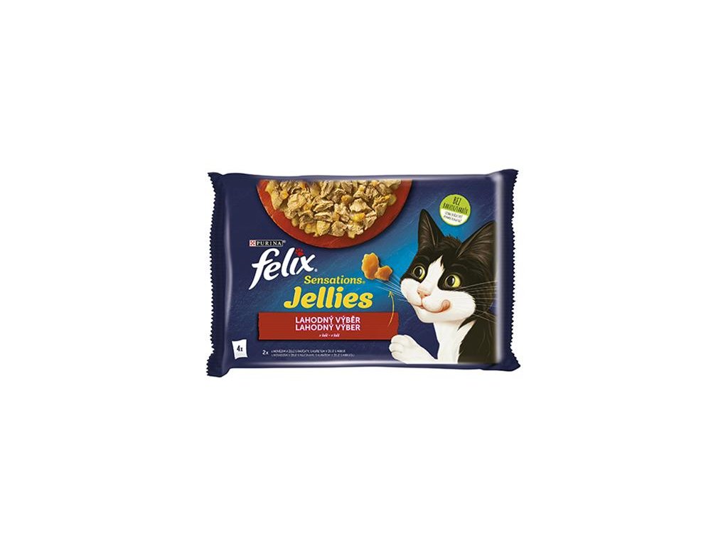 Kompletné krmivo pre dospelé mačky hovädzie v želé, kura v želé, tuniak v želé a losos v želé. Balenie 44 x 85 g.
