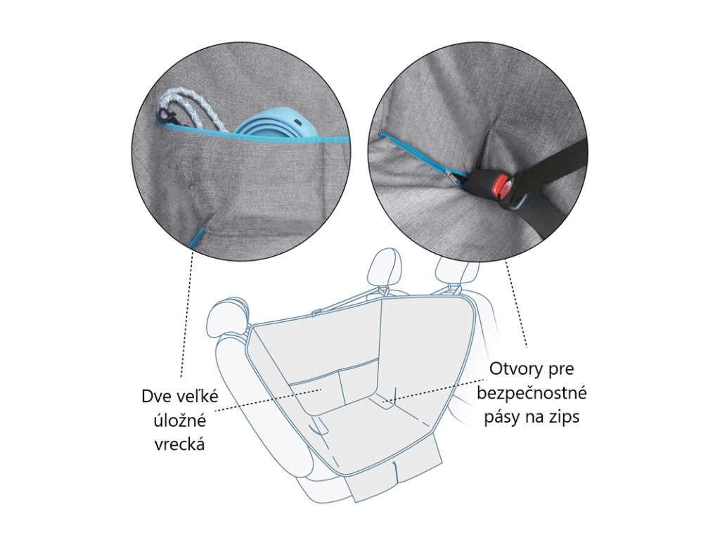Ochranný poťah obsahuje otvory na bezpečnostné pásy