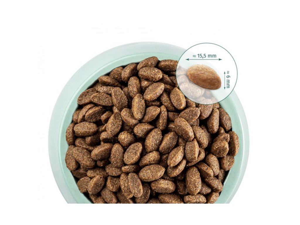 Zloženie: treska 14%, dehydrovaný morčací proteín, najmenej 11%, dehydrovaný kurací proteín, najmenej 11%, ryža, jačmeň, kukurica, kukuričný proteín, kurací tuk, minerály, hydrolyzovaná živočíšna bielkovina 2,0%, hydrolyzovaná suchá kuracia pečeň , ľanové semiačko 1,7%, pivovarské kvasnice, repná dužina, lososový olej, hydrolyzovaný rybí proteín 1%, vaječný prášok, brusnica 0,2%, brutnákový olej, beta-1,3 / 1,6 glukany 0,05%, Actigen® (zdroj prebiotík-manano-oligosacharidov) 0,04%, nechtík (zdroj luteínu) 0,04%, koreň lopúcha, koreň marshmallow, kvety harmančeka 0,03%, žihľava 0,03%, tymian 0,015%.