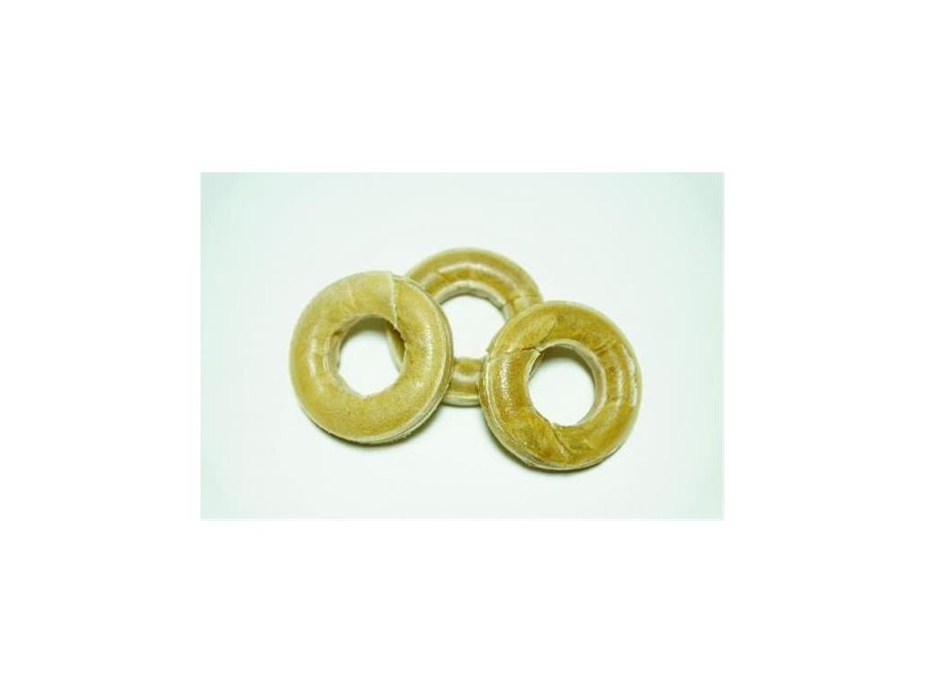 Žuvacia maškrta pre psov z byvolej kože. Posilňuje žuvacie svaly a dlhodobo zabaví. Hmotnosť 70g, priemer 4,5cm, šitá.
