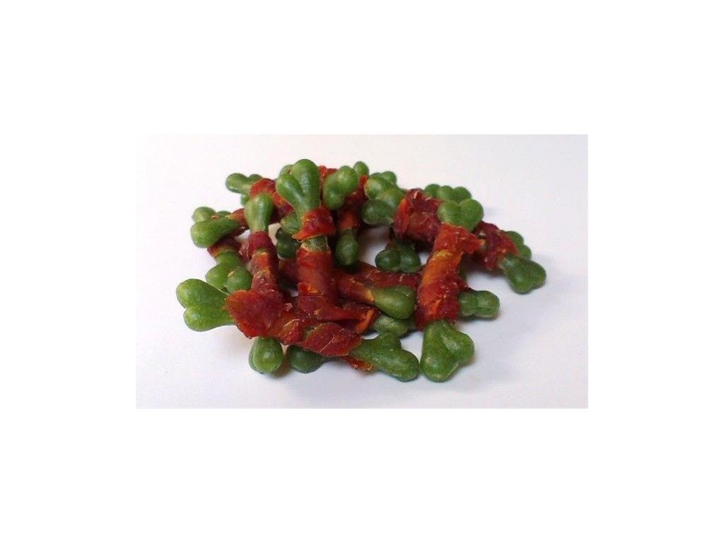 Doplnkové krmivo pre psy, podávajte ako pochúťku. Zloženie: kuracie mäso 59%, vápnik 40%, glycerín 1%. Kŕmny návod: zvieraťu podávajte 2-8 kúskov denne....