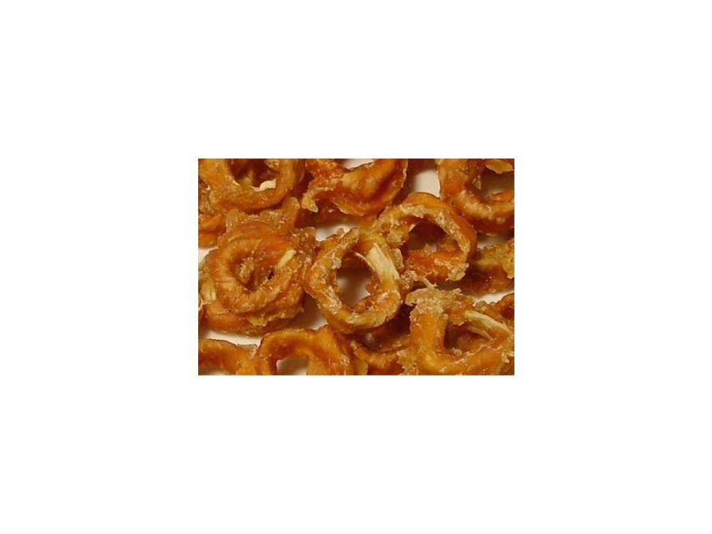 Vysokokvalitné sušené kačacie mäso pre psy ako doplnkové krmivo. Tvar krúžkov. Doprajte svojmu miláčikovi pochúťku, ktorej neodolá!