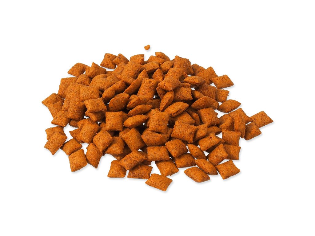 Doplnkové krmivo bez obilnín pre dospelé mačky. Vhodné pre mačky s citlivým trávením. Chrumkavé a lákavé.