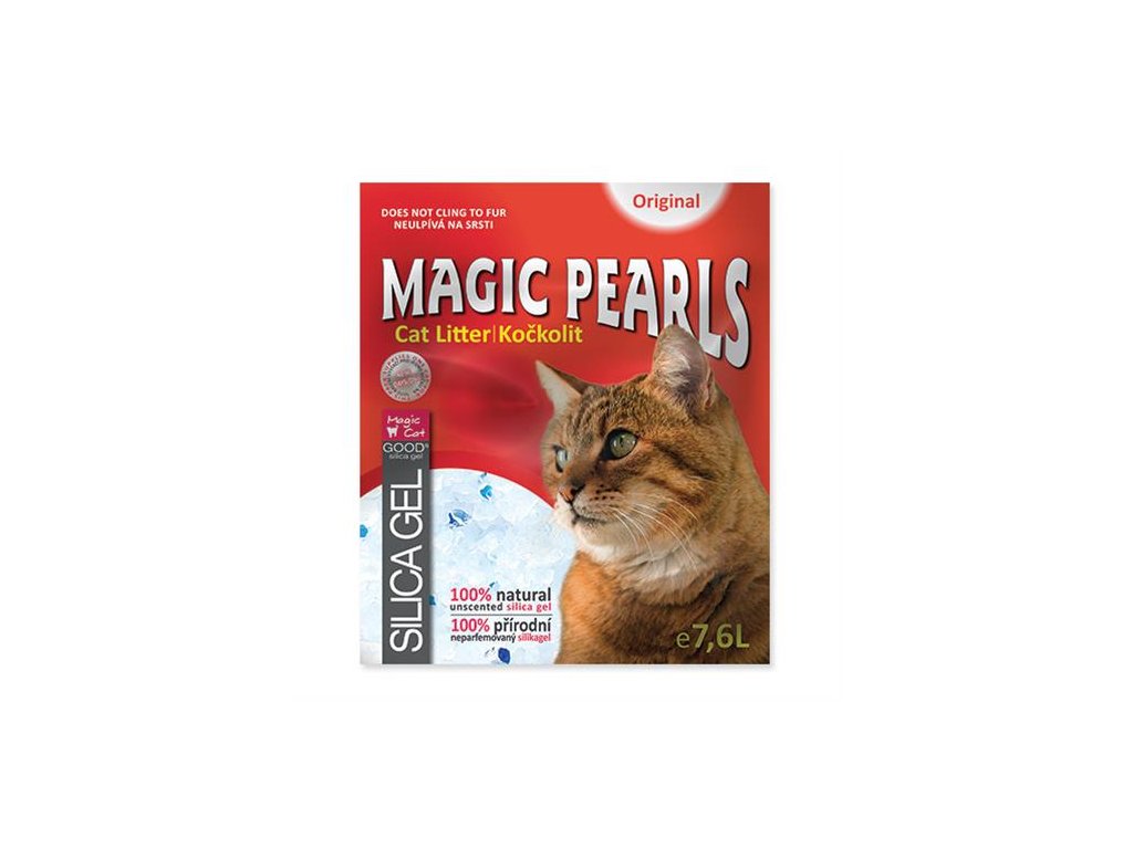 Magic Pearls pelety adsorbujú moč behom niekoľkých sekúnd a zostávajú na dotyk suché. Zápach nie je len zachytený, ale úplne eliminovaný. Tento absorpčný proces tiež ničí baktérie. Bezkonkurenčne ekonomický. Len jeden 7,6 litrový sáčok Magic Pearls vydrží vašej mačke dva mesiace. Pohltí všetky pachy a drží ich vo vnútri. Magic Pearls má špeciálnu veľkosť, tvar a zloženie, ktoré sa nechytá na srsť mačky a nie je vynášaný z nádoby.