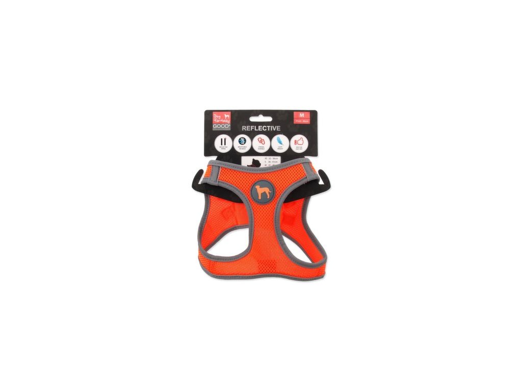 - Po obvode celého postroja sú všité reflexné prvky pre bezpečný pohyb zvieraťa.