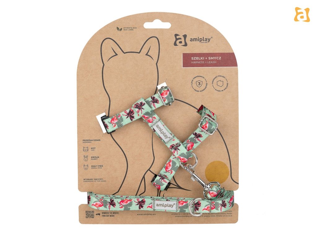5907563304963 amiplay BeHappy Cat Postroj a vodítko S Flamingo