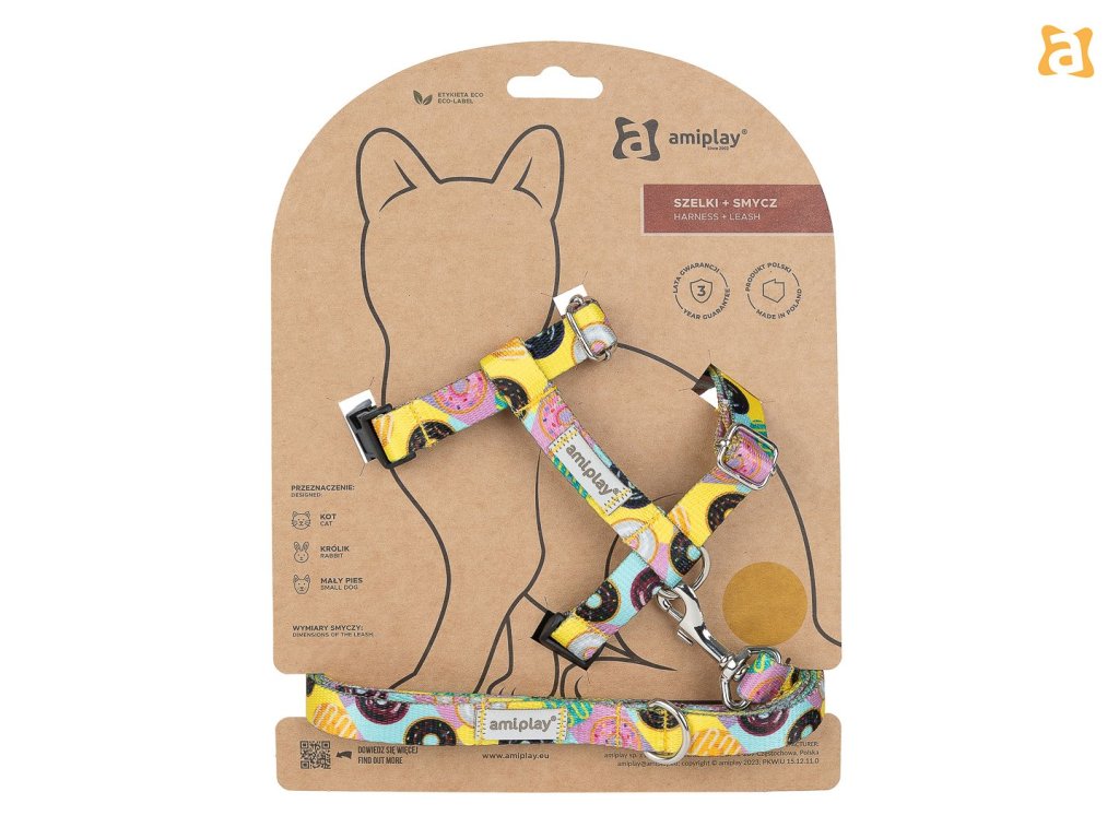 5907563304970 amiplay BeHappy postroj a vodítko pre mačky S Donut