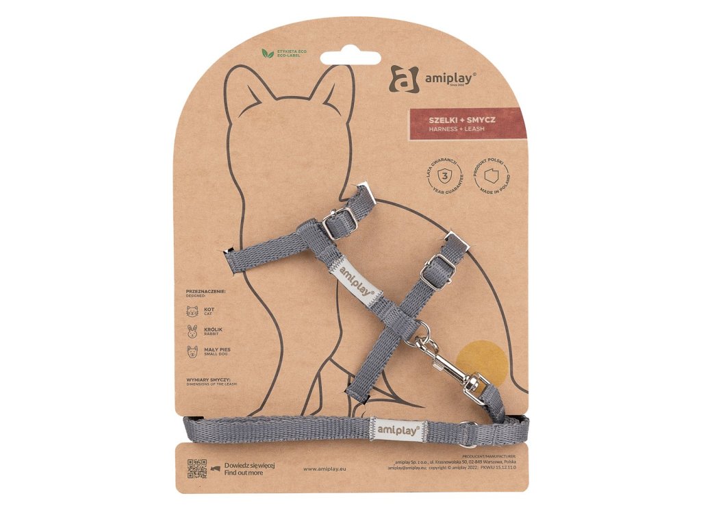 Vodítko, ktoré je súčasťou súpravy, je klasický 150 cm dlhý model s ľahkou karabínou, ktorá mačku nezaťažuje. Poskytuje veľkú mieru bezpečnosti a vášmu domácemu miláčikovi poskytuje dostatočnú voľnosť pri skúmaní okolia počas prechádzky.