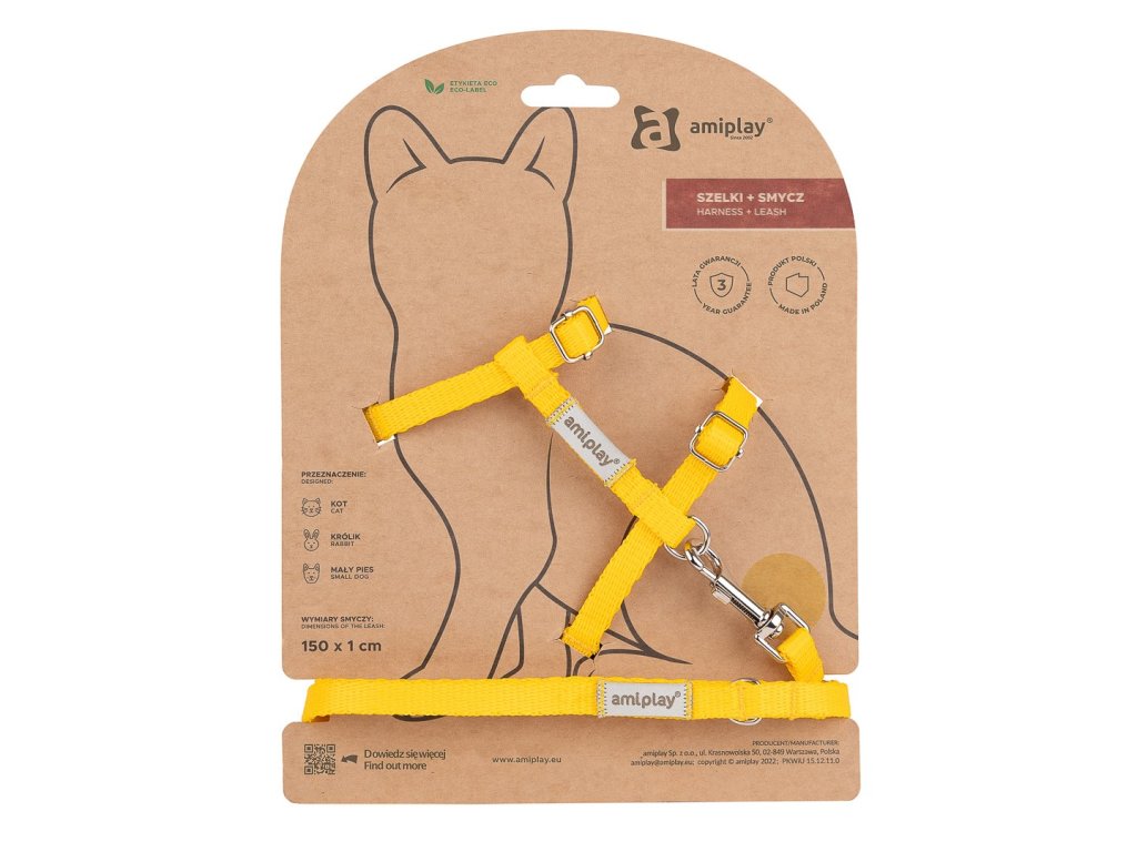 Vodítko, ktoré je súčasťou súpravy, je klasický 150 cm dlhý model s ľahkou karabínou, ktorá mačku nezaťažuje. Poskytuje veľkú mieru bezpečnosti a vášmu domácemu miláčikovi poskytuje dostatočnú voľnosť pri skúmaní okolia počas prechádzky.