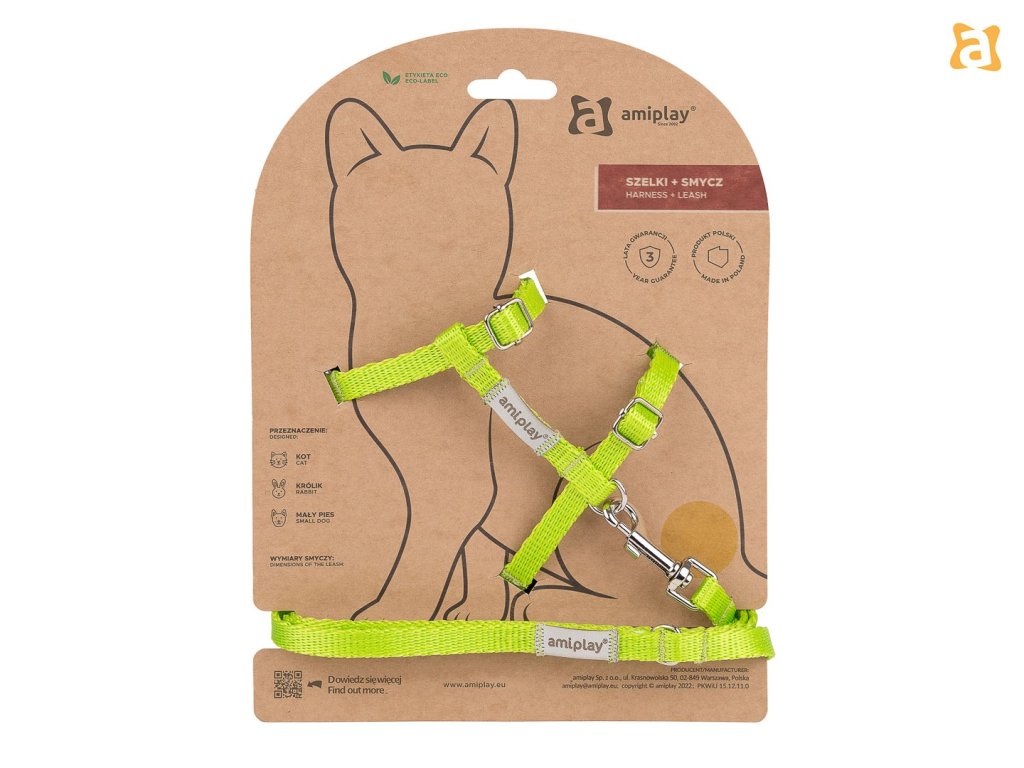 Vodítko, ktoré je súčasťou súpravy, je klasický 150 cm dlhý model s ľahkou karabínou, ktorá mačku nezaťažuje. Poskytuje veľkú mieru bezpečnosti a vášmu domácemu miláčikovi poskytuje dostatočnú voľnosť pri skúmaní okolia počas prechádzky.