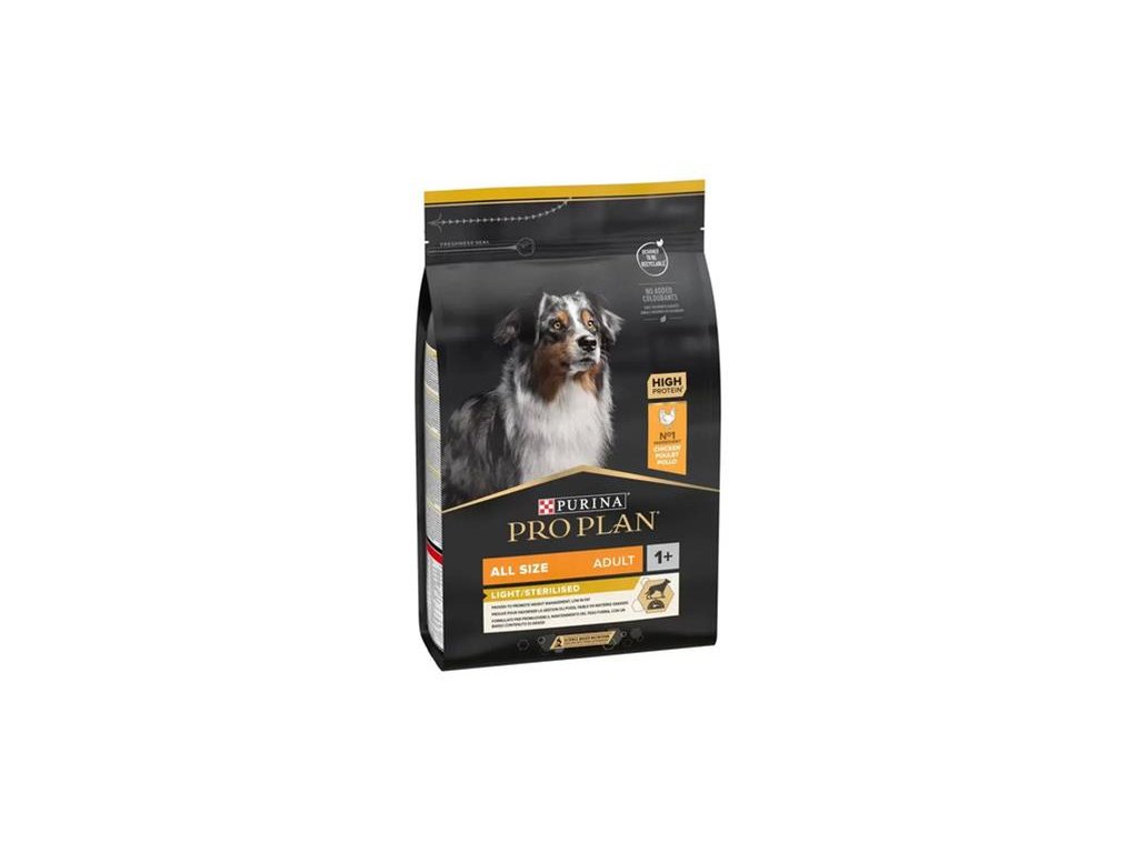 Proplan MO Dog Adult All Size Light/Sterilised kura 3 kgKompletné krmivo pre dospelé psy s kuracím mäsom. OPTIWEIGHT podporuje zdravé chudnutie a udržuje telesnú hmotnosť vďaka vysokému...