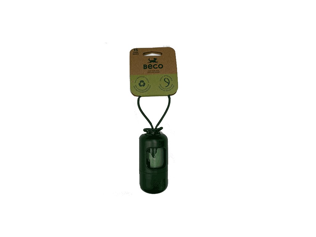 Púzdro na vrecká Beco Poop Bag Dispenser je vyrobené z bambusových vlákien zmiešané s ryžovými šupkami a kukuričným škrobom. Prirodzená sila bambusu ich robí rovnako odolnými ako plastové alternatívy. Hodí sa na všetky štandardné rolky vrecúšok. Súčasťou balenia je 15 vrecúšok ekologických vreciek na exkrementy.