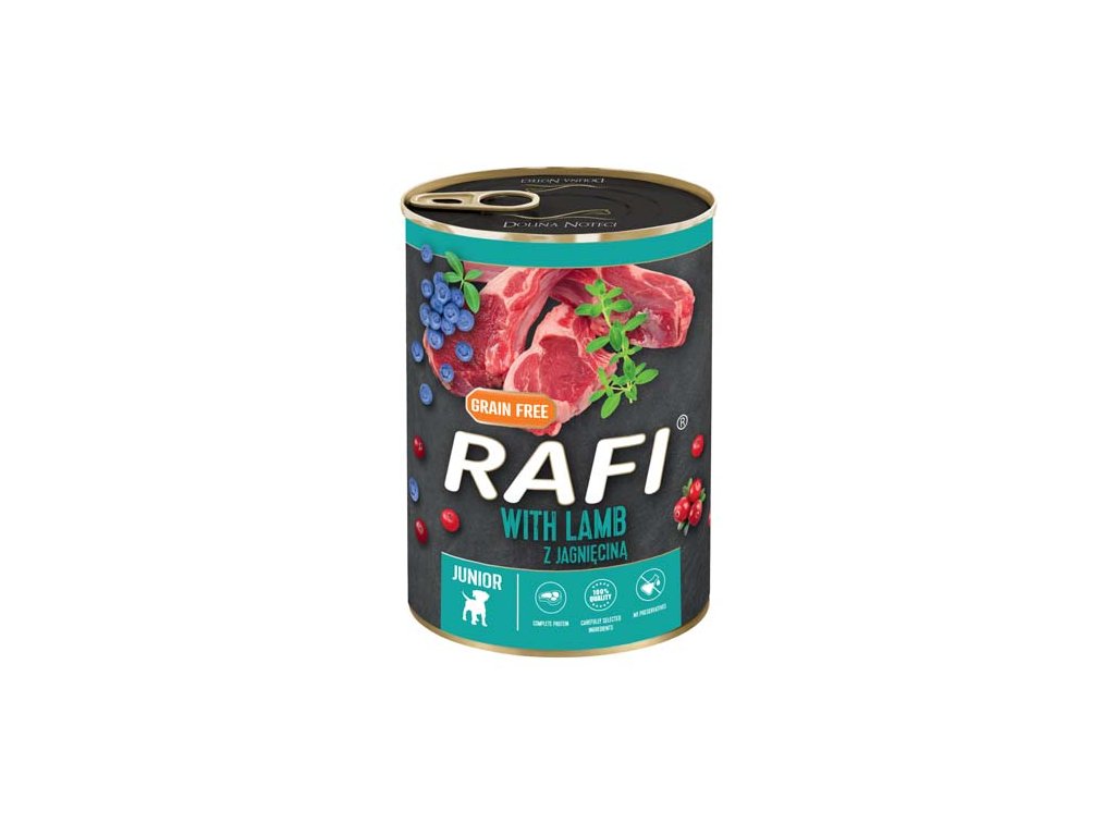 RAFI JUNIOR paštéta s jahňacím mäsom, čučoriedkami a brusnicami 400g - konzerva