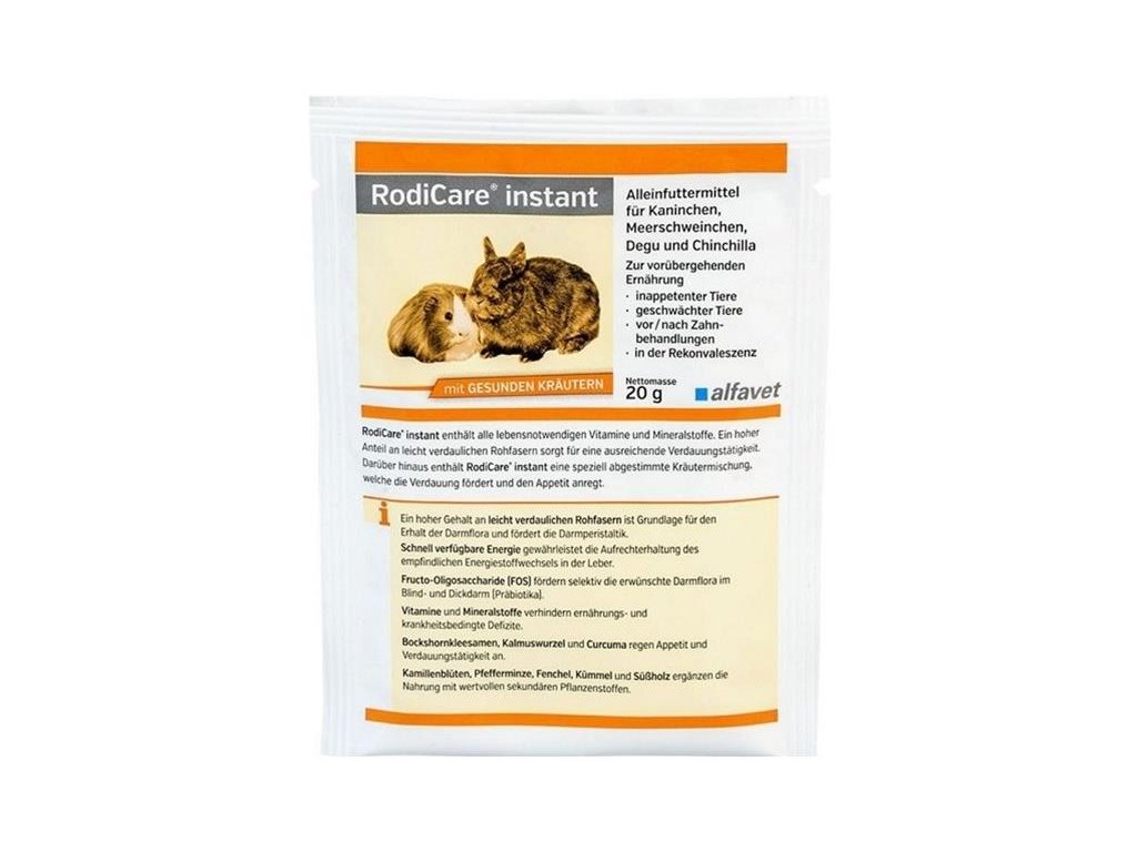 Vysoko kvalitné kompletné krmivo v práškovej forme určené pre králiky, morčatá, činčily a osmánky, ktoré dočasne nemôžu požívať kompaktnú stravu.Prášok...