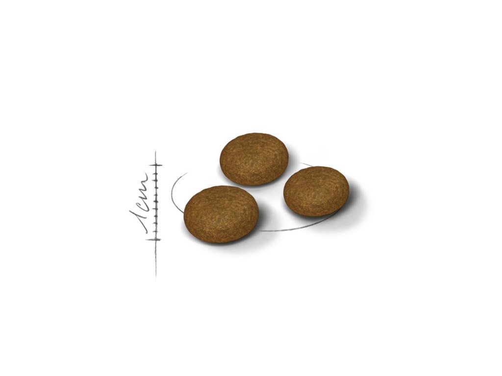 ZLOŽENIE: dehydrované hydinové bielkoviny, kukuričná múka, živočíšne tuky, pšeničná múka, pšeničný glutén*, ryža, hydrolyzované živočíšne bielkoviny, cukrovarské rezky, kukuričný glutén, kvasnicové produkty, minerálne látky, fruktooligosacharidy, olej z rias Schizochytrium sp., múčka z aksamietnic.DOPLNKOVÉ LÁTKY (na 1 kg): Výživné doplnkové látky: Vitamín A: 13300 IU, Vitamín D3: 700 IU, Železo (3b103): 28 mg, Jód (3b201, 3b202): 2,8 mg, Meď (3b405, 3b406): 9 mg, Mangán (3b502, 3b504): 37 mg, Zinok (3b603, 3b605, 3b606): 115 mg, Selén (3b801, 3b811, 3b812): 0,07 mg - Antioxidanty.Výživové hodnoty