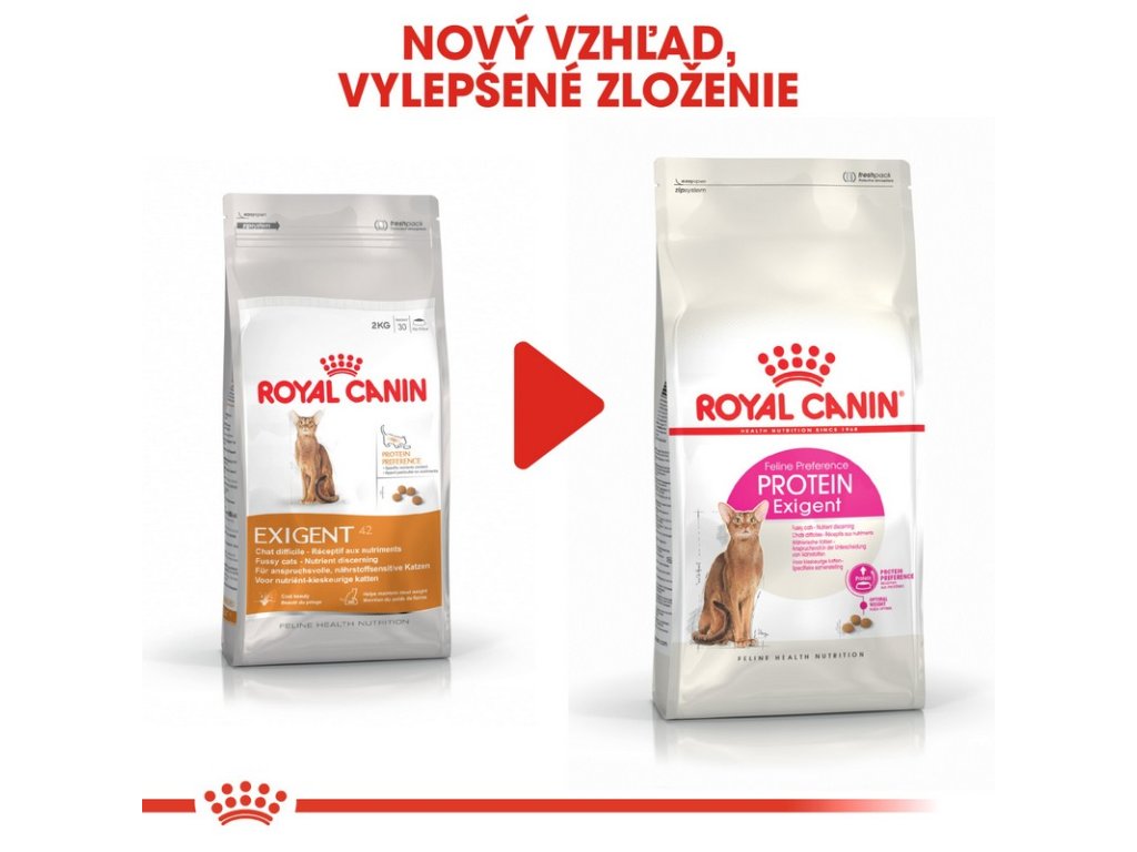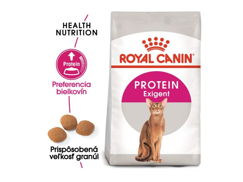 Niektoré vyberavé mačky chuťovo priťahujú špecifické hladiny bielkovín. Granule Protein Exigent obsahujú špecifické bielkoviny, sacharidy a rovnovážny obsah tukov, aby uspokojili prirodzenú preferenciu týchto mačiek.