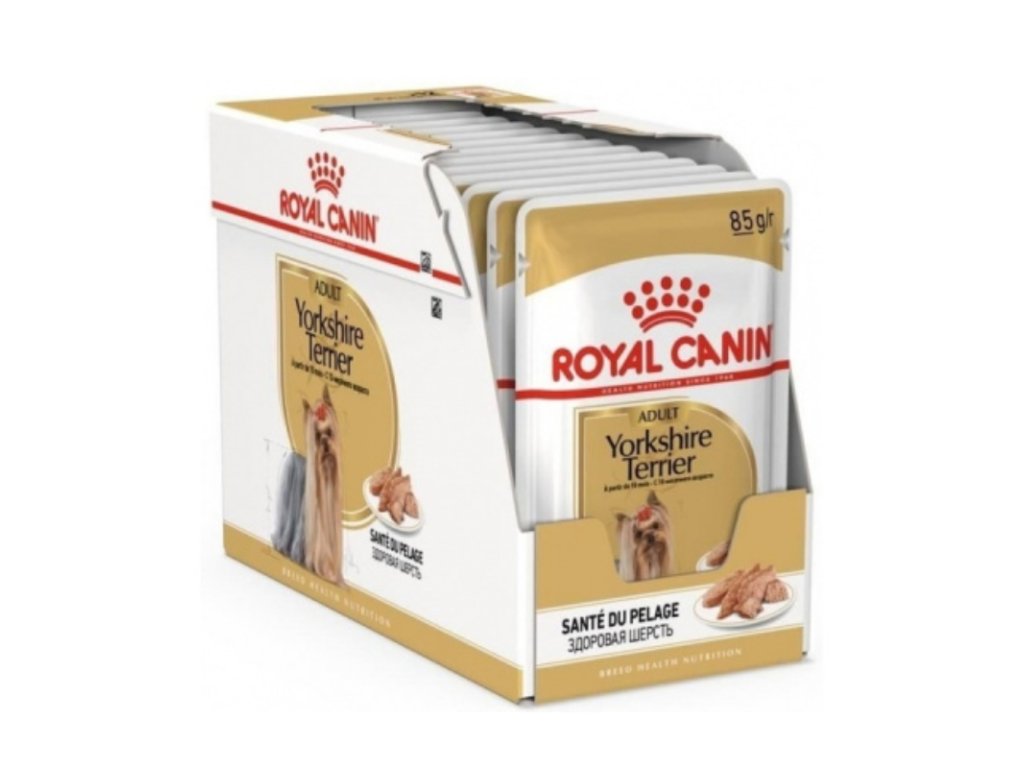 Kapsičky Royal Canin Yorkshire terrier boli špeciálne prispôsobené pre potreby psov plemena Yorkshire terrier, starších ako 10 mesiacov. Pomáhajú udržiavať zdravie pokožky a dlhej srsti Yorkshirskeho teriéra s exkluzívnou zmesou živín - aby bola ich srsť lesklá a hodvábna. Podporuje správne trávenie s presnými hladinami živín, pomáha v udržiavaní optimálnej hmotnosti a srsť aj pokožka sú vďaka tomuto krmivu zdravé. Poskytuje textúru na zvýšenie chuti a stimuláciu do jedla vášho psa. Vôňa a jemnosť tohto chutného krmiva uspokojí chuť aj toho najnáročnejšieho Yorkshirského teriéra. Všetky živiny v krmive sú optimálne vyvážené. Tým výrobca zaistí, aby Váš psík dostal všetko, čo potrebuje nato, aby sa cítil skvelo.