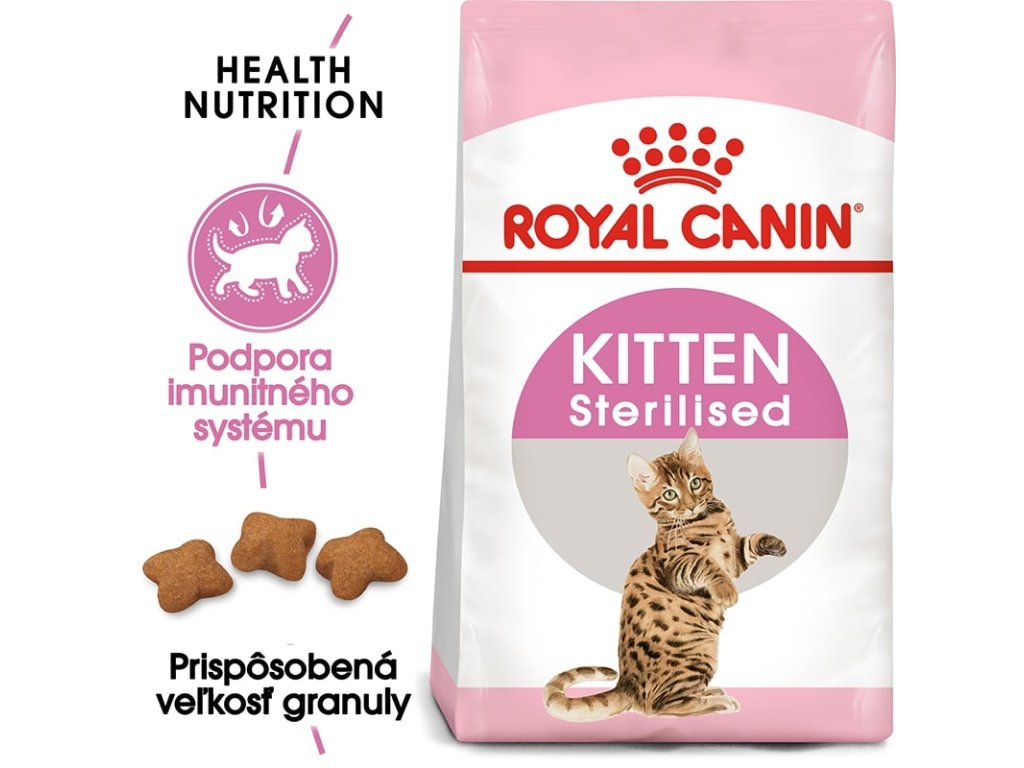 Granule Royal Canin Kitten Sterilised sú jedinečnou receptúrou navrhnuté tak, aby spĺňali všetky podmienky pre spokojný a zdravý rast kastrovaného mačiatka.