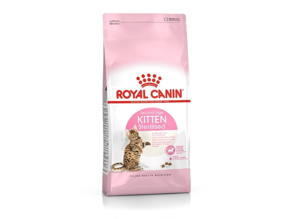 Rast je prvou a základnou etapou v živote mačky: je to čas veľkých zmien, objavov a nových výziev. Počas tejto kľúčovej doby sa imunitný systém mačiatka postupne vyvíja. Krmivo Kitten Sterilised podporuje prirodzenú obranyshopnosť miačiatka v druhej fáze rastu vďaka patentovanému komplexu antioxidantov, vrátane vitamínu E.