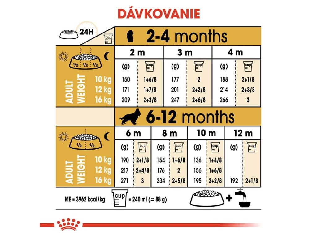 Krmivo je vhodné pre všetky šteniatka a mladých psov s váhou od 11 do 25 kg v prvých 12 mesiacoch života.