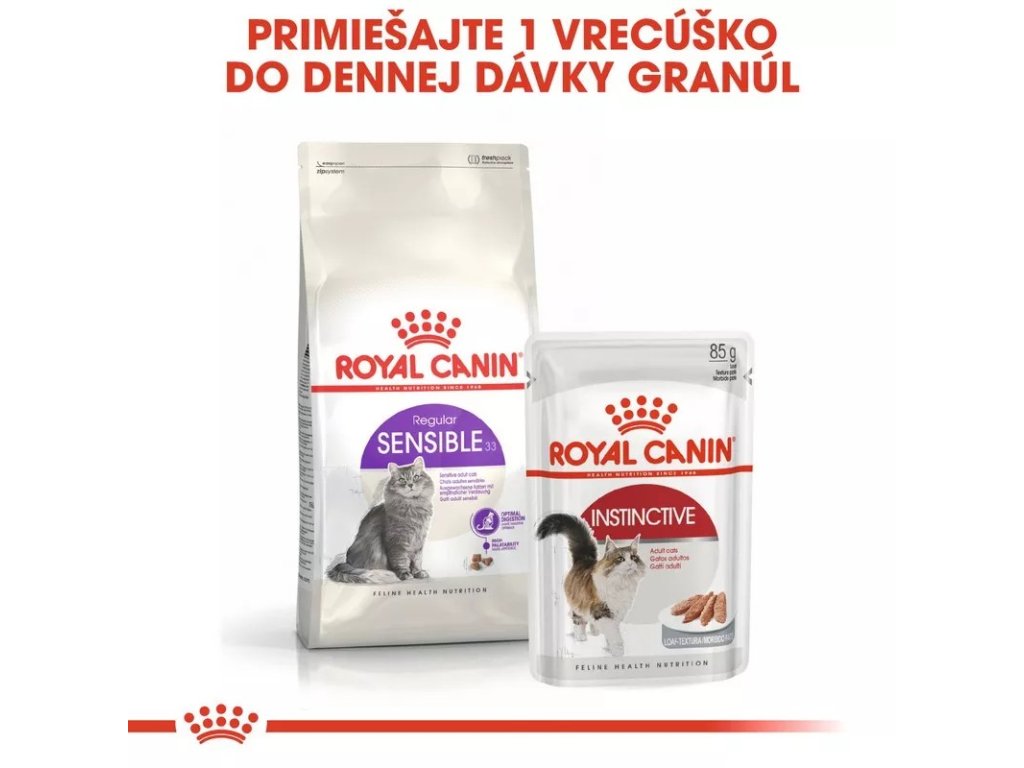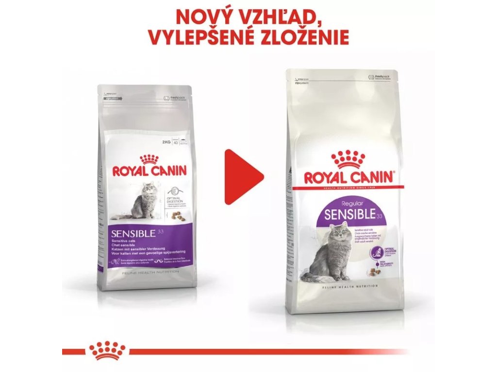 Granule Royal Canin Sensible 33 sú určené špeciálne pre dospelé mačky vo veku od 1 - 7 rokov, ktoré majú citlivé trávenie. Tráviaci systém niektorých mačiek môže vykazovať citlivosť na určité druhy potravín. Z toho dôvodu je pre ich optimálne zdravie dôležité podávať vyvážené kompletné krmivo obsahujúce všetky potrebné živiny. Pri správnej výžive takýchto mačiek je nutné zohľadniť viacero faktorov.