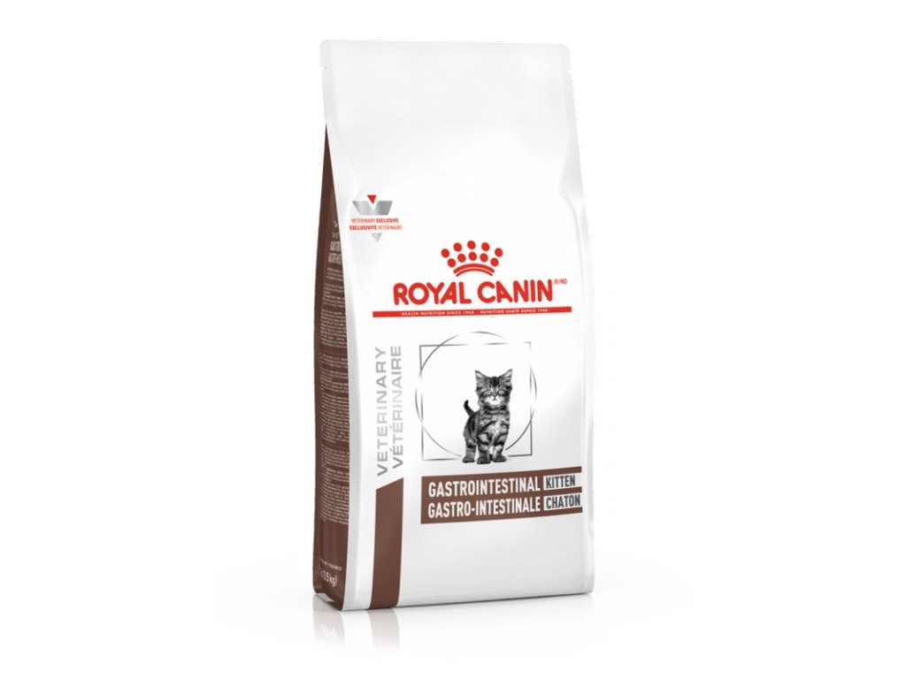 ROYAL CANIN® GASTROINTESTINAL KITTEN suché krmivo je kompletné diétne krmivo pre mačiatka, s receptúrou pre zlepšenie akútnych črevných a resorpčných ochorení, podporou nutričnej obnovy a rekonvalescencie. Krmivo podávajte po dobu 1 až 2 týždňov počas obdobia akútnych hnačiek a následnej rekonvalescenci, pokiaľ sa nedosiahne úplné uzdravenie.