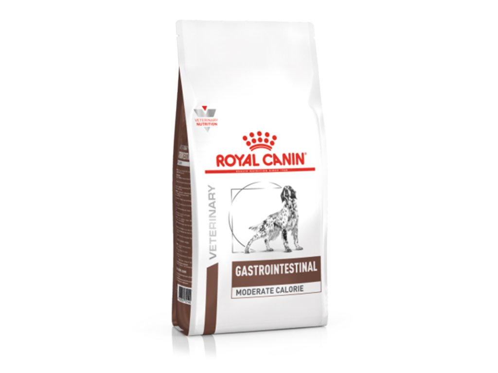 Royal Canin VD Gastro Intestinal Moderate Calorie je diétne krmivo s optimálnym množstvom energie, určené psom, ktorí majú sklony k vzniku ochorení tráviaceho traktu, napr. zápalu žalúdka (gastritída), chronickým hnačkám (diarrhoea) alebo zápalu slinivky (pankreatitída). Krmivo je zložené z ľahko stráviteľných bielkovín, ktoré znižujú črevné fermentačné procesy. FOS ovplyvňuje motoriku čriev a harmonizuje tak črevnú mikroflóru. Esenciálne mastné kyseliny EPA a DHA napomáhajú k redukcii alebo liečbe zápalových procesov v črevách. MOSstimuluje lokálny imunitný systém v črevách a napomáha neutralizovať patogénne baktérie.
