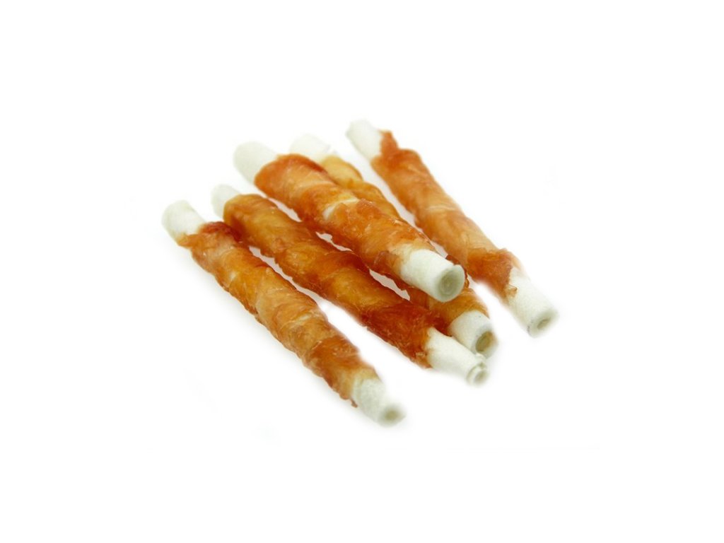 Prírodné žuvačky z byvolej kože s kuracím mäsom. Čistia zuby, posilňujú svalstvo a chutia skvele. Ideálne pre psov.