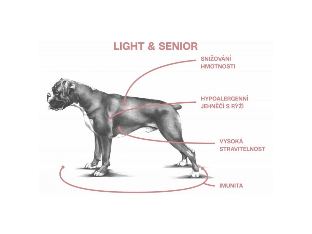 Určené pre psov všetkých plemien s nadváhou, pre starších psov, obzvlášť vhodné pre hypoalergénnu výživu alebo pre psov so špeciálnymi nárokmi na výživu.