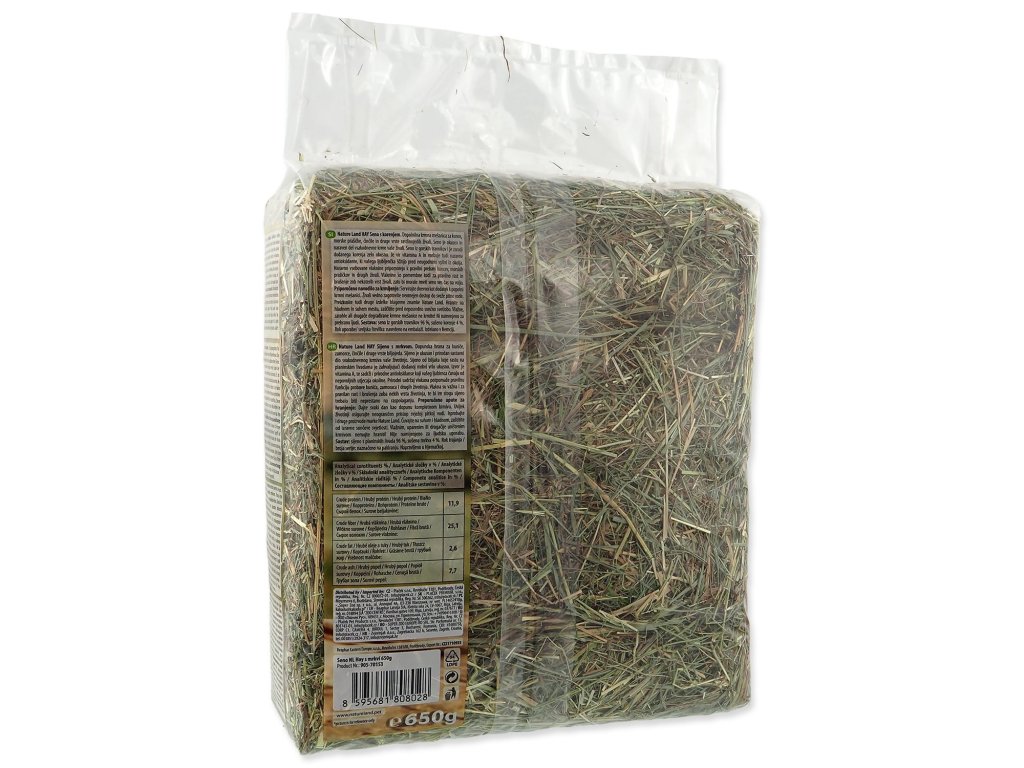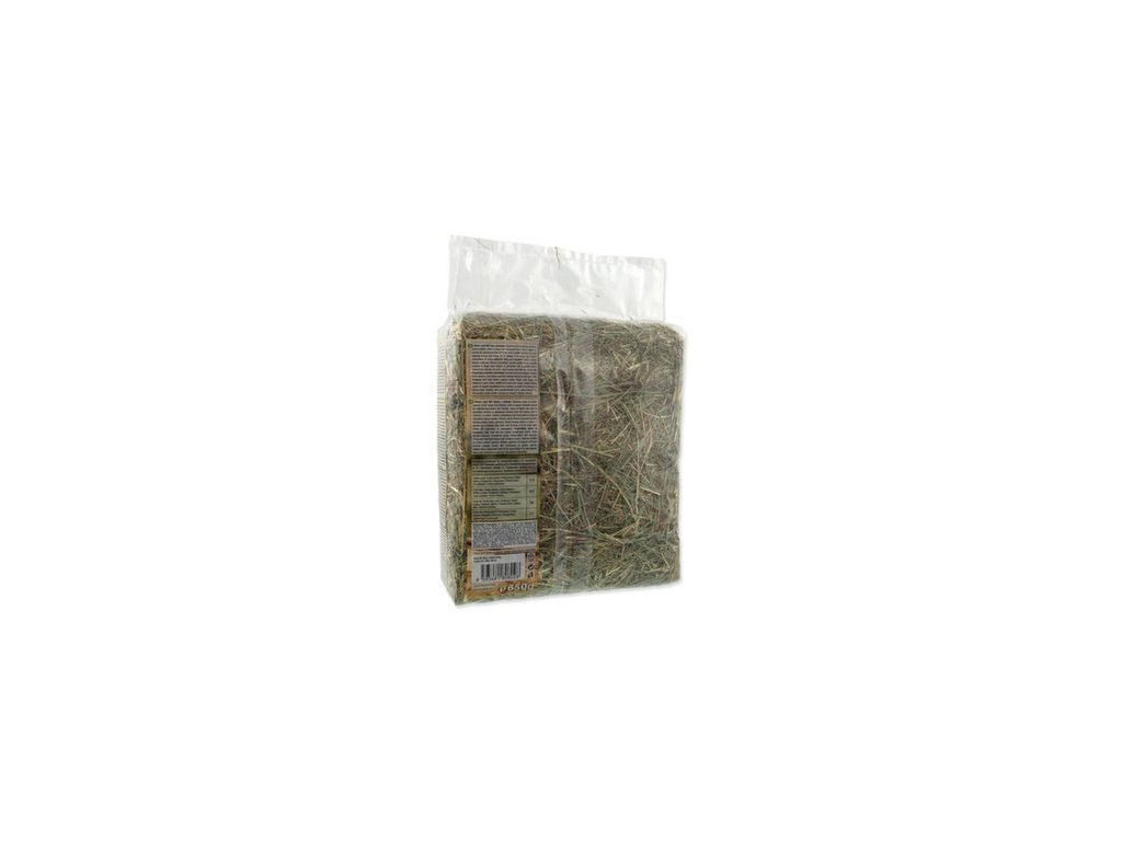 Krmivo pre králiky, morčatá, činčily a ďalšie druhy bylinožravých zvierat. Seno je chutnou a prirodzenou časťou každodenného krmiva vášho zvieratka. Seno z rastlín rastúcich na horských lúkach má vďaka pridanej mrkve vysokú chutnosť. Prirodzene obsiahnutá vláknina napomáha správnej funkcii trávenia králikov, morčiat a ďalších zvierat. Vláknina je tiež dôležitá pre správny rast a obrusovanie zubov niektorých druhov zvierat, preto by mali mať seno neustále k dispozícii.?