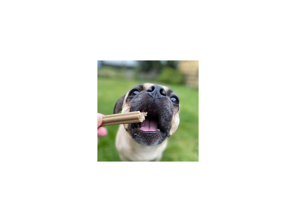 Odporúčané dávkovanie: malé psy (do 10 kg) 1 tyčinky za deň, stredné psy (10-20 kg) 1 tyčinka za deň, veľké psy (nad 20 kg) 2 tyčinky za deň. Dávkovanie je orientačné, podávajte len ako pamlsok. Dávku prispôsobte aj veku a kondícií psa. Zabezpečte prístup k čerstvej pitnej vode.