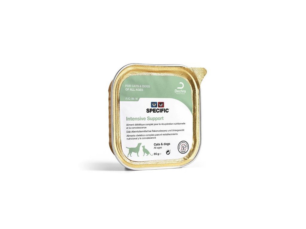 SPECIFIC Intensive Support je kompletné diétne krmivo pre psy a mačky určené na zotavenie organizmu pomocou výživy, pri rekonvalescencii a v prípade pečeňovej lipidózy mačiek. Krmivo s vysokým obsahom energie obsahuje zvýšené koncentrácie nevyhnutných živín a vysoko stráviteľných zložiek. Vysoký obsah omega-3 mastných kyselín z rybieho oleja a ß-1,3/1,6-glukánov podporuje proces zotavenia a posilňuje imunitný systém.