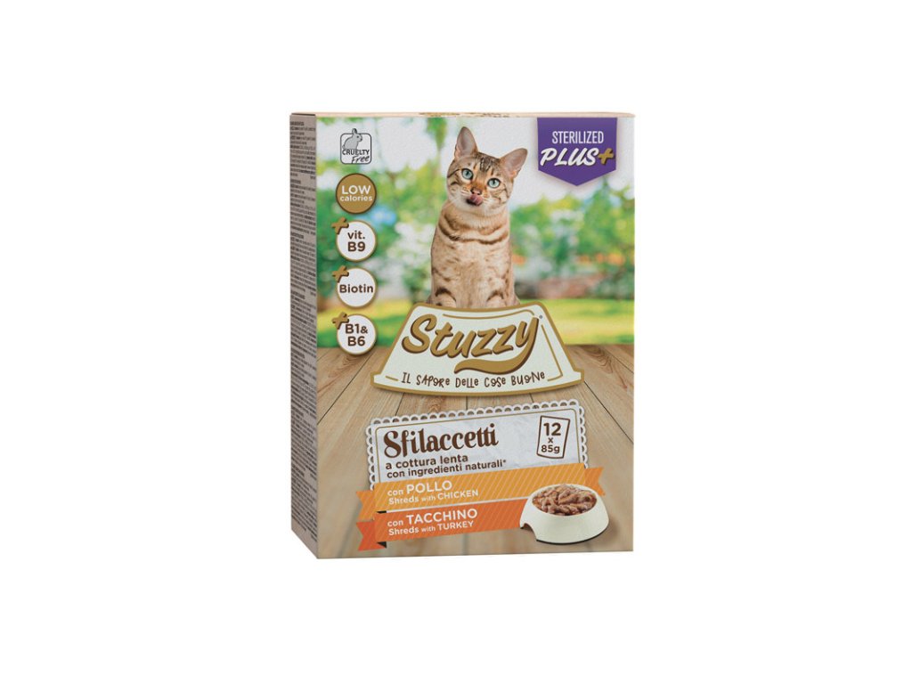Stuzzy Cat Shreds Multipack Sterilized trhané kuracie a morčacie mäso 12x85g