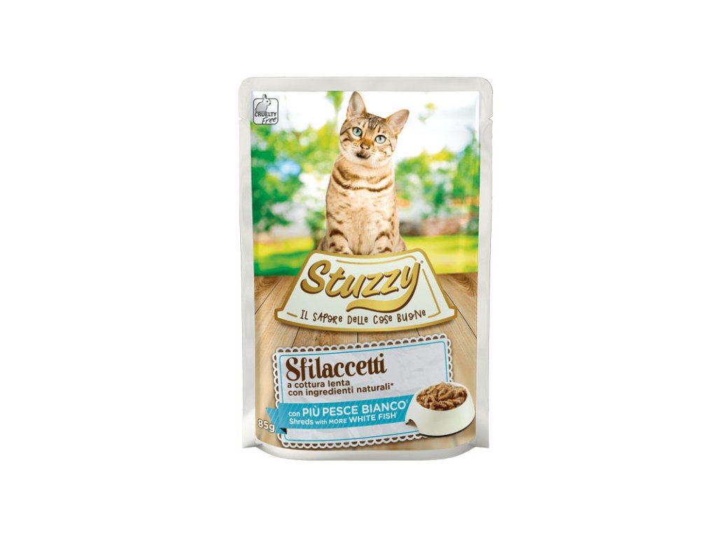 Stuzzy Cat Shreds - Trhané mäso z bielych druhov rýb 85g