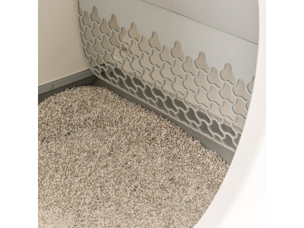 - Pre tento typ toalety je vhodné len hrudkujúce stelivo, keďže najefektívnejšie zachytáva vlhkosť a zápach. Vytvára pevné hrudky, ktoré sa ľahko odstraňujú, čo uľahčuje údržbu toalety. To zároveň pomáha udržiavať čistotu a hygienu, pretože hrudky sa dajú jednoducho vybrať a zvyšok steliva zostáva suchý a použiteľný.