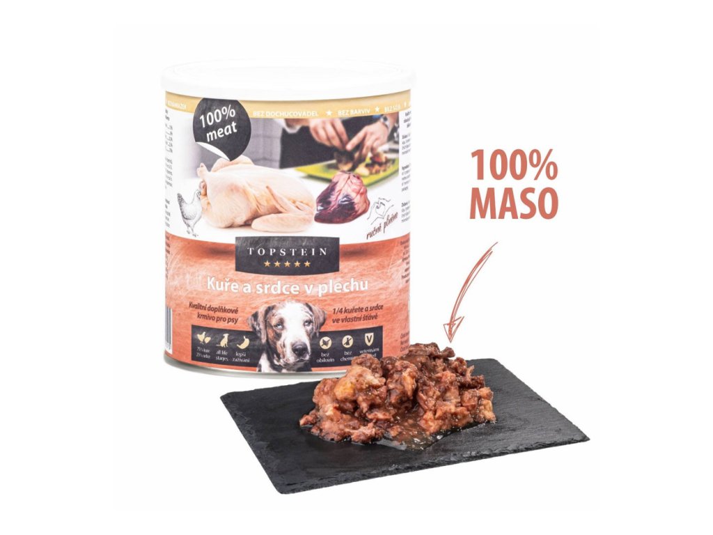 Topstein konzerva pre psov kura a srdce v plechu 800 g